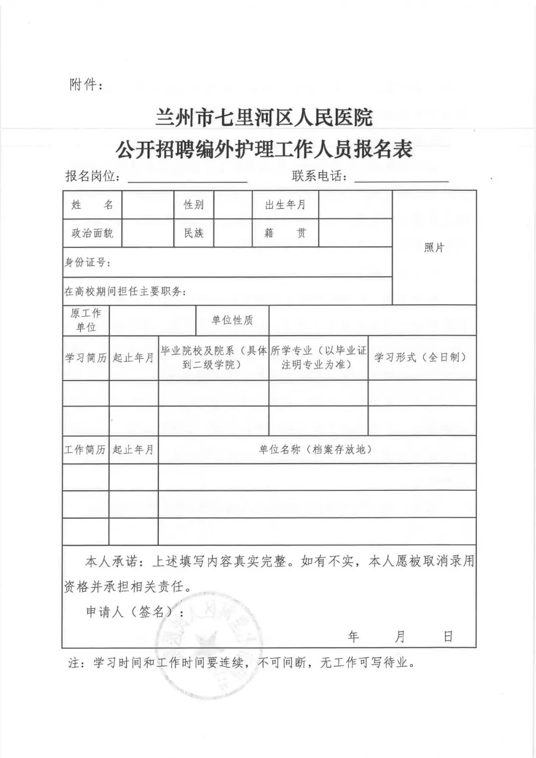 原文标题:兰州市七里河区人民医院公开招聘编外护理工作人员公告